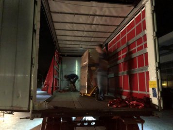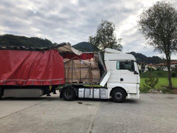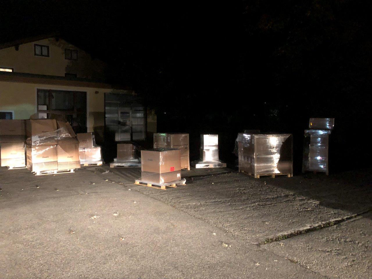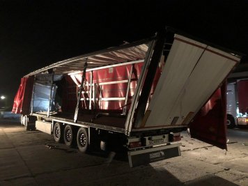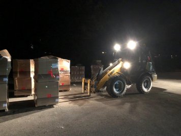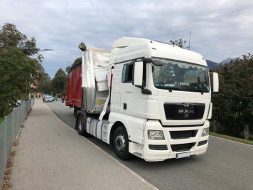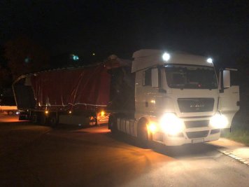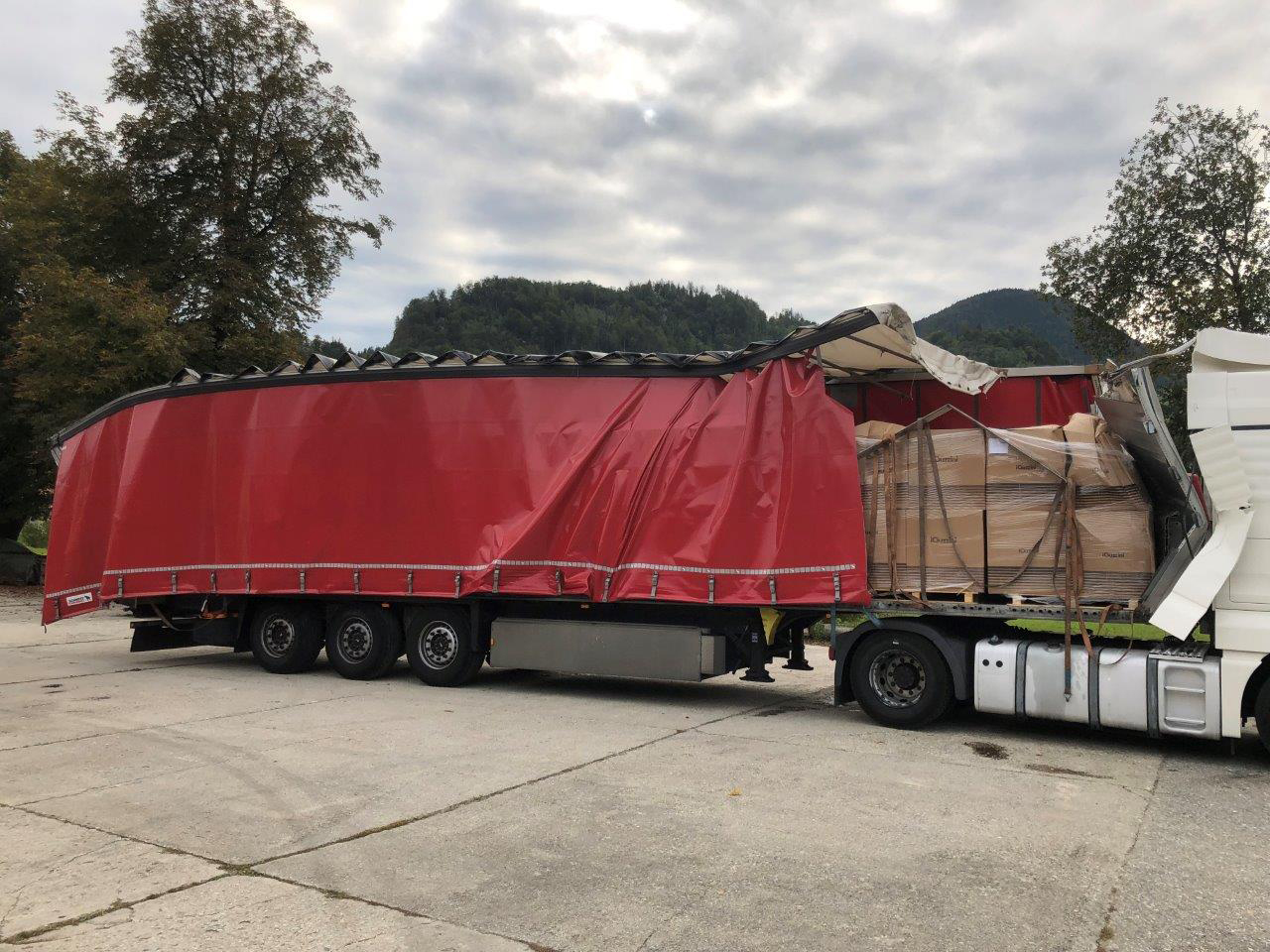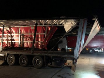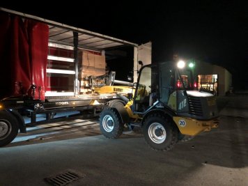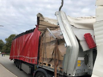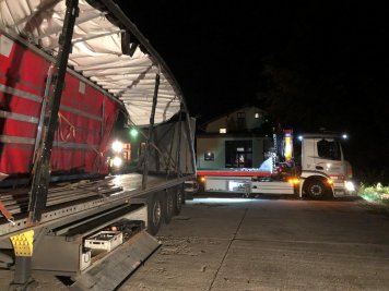 Nach zwei Anläufen und einem dann komplett zerstörten Auflieger wurden wir von der Polizei zum Einsatz verständigt. Nach Räumung der Fahrbahn und Eintreffen eines Ersatz-LKW sowie eines Radladers, wurde die komplette Ladung hochwertiger Elektrogeräte umgeladen. Der Auflieger wurde anschließend mit der Seilwinde provisorisch eingerichtet, fahrbereit gemacht und zum Betriebshof verbracht.