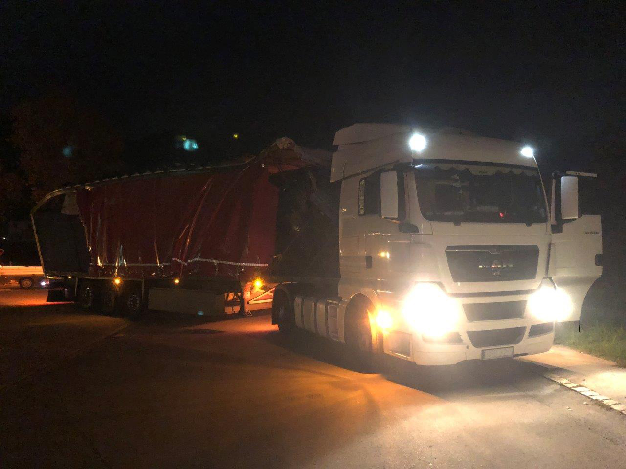 Ein LKW-Fahrer hatte stark alkoholisiert die Höhe einer Eisenbahnbrücke falsch eingeschätzt.