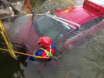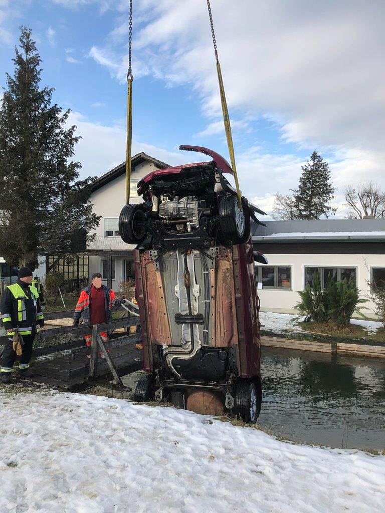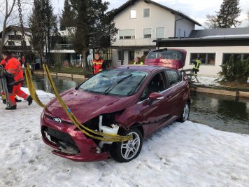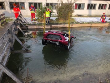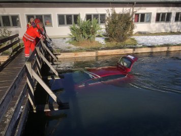 Passanten und die zwischenzeitlich eigetroffenen Rettungskräfte konnten den Fahrer rechtzeitig retten, bevor das Fahrzeug unterging. Wir wurden von der